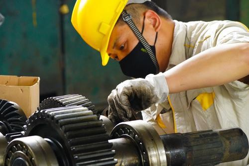 中煤新集公司机修厂工作人员精修设备,确保电煤供应。