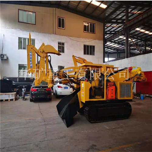 WPZ-45/450煤矿巷道修复机集装载、破碎、行走于一体,具有多功能的设备,主要用于巷道受压变形后修复,特别是对岩石底板、起鼓、侧帮水沟的挖掘、起到很大作用。实现扩帮、挑顶、起底机械化施工,大臂可以旋转360°,也可以大臂下降落地,扒皮带下面落地煤。同时配备了冲击锤、铲斗快拆装置,在井下可以短时间内实现的功能转换。