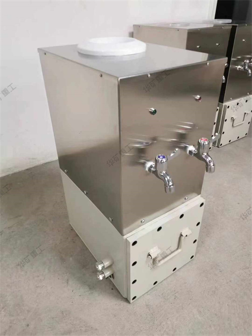 矿用防爆饮水机为矿用隔爆兼本安型,防爆标志为Exd[ib]I。使用在有甲烷气体混合物和煤尘爆炸危险的煤矿井下。可同时提供85℃的热水和常温水,可供井下工作人员饮用热水。本加热器能自动控温,采用内置不锈钢电加热管加热,具有寿命长热效高,升温快,噪声低,具有安全隔爆,省电等特点。