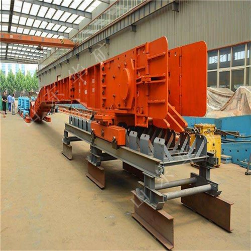 刮板转载机是一种可以纵向整体移动的重型刮板输送机,其长度较小,便于随着采煤工作面的推进和带式输送机的收缩而整体移动。转载机安装在采煤工作面运输巷中,与可伸缩带式输送机配套使用,同工作面刮板输送机衔接配合顺槽用刮板转载机有轧制中部槽组装式和整体组焊箱式结构两种,主要用于综合机械化采煤,在长壁工作面刮板输送机和顺槽可伸缩皮带机之间起转载输送煤炭的作用。使用转载机后,可以避免顺槽可伸缩皮带机机尾的频繁移动,从而保证工作面生产的顺利进行。刮板转载机主要应用于高产、高效综合机械化工作面顺槽转载输送煤炭。它是由中部槽、链条、刮板及牵引系统组成。