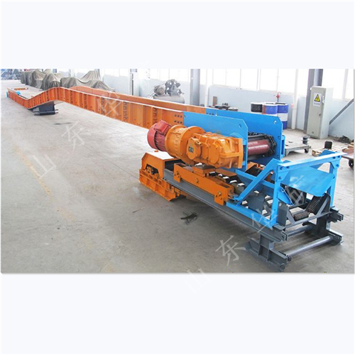 刮板转载机是一种可以纵向整体移动的重型刮板输送机,其长度较小,便于随着采煤工作面的推进和带式输送机的收缩而整体移动。转载机安装在采煤工作面运输巷中,与可伸缩带式输送机配套使用,同工作面刮板输送机衔接配合顺槽用刮板转载机有轧制中部槽组装式和整体组焊箱式结构两种,主要用于综合机械化采煤,在长壁工作面刮板输送机和顺槽可伸缩皮带机之间起转载输送煤炭的作用。使用转载机后,可以避免顺槽可伸缩皮带机机尾的频繁移动,从而保证工作面生产的顺利进行。刮板转载机主要应用于高产、高效综合机械化工作面顺槽转载输送煤炭。它是由中部槽、链条、刮板及牵引系统组成。