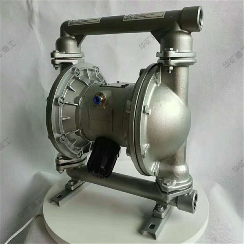 气动隔膜泵既能抽送流动的液体,又能输送一些不易流动的介质,具有自吸泵、潜水泵、屏蔽泵、泥浆泵和杂质泵等输送机械的许多优点。采用压缩空气为动力源,对于各种腐蚀性液体,带颗粒的液体,高粘度、易挥发、易燃、剧毒的液体,均能予以抽光吸尽。三种材质、铝合金、铸铁、不锈钢。隔膜泵根据不同液体介质分别采用丁晴橡胶、氯丁橡胶、氟橡胶、聚四氟乙烯。以满足不同用户的需要。