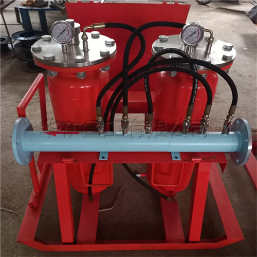 本设备为纯机械装置,主要由气动泵、储液箱、压力调节系统、速度调节系统、液箱转换系统、混液系统组成。工作动力为压风(压缩空气)为动力,利用气动加液泵将一种液体加入到另一种液体中。输出压力和输出流量均可调节,添加液既可使用内置储液箱,也可外接储液箱(装置留有外置储液箱接口,利用转换阀门转换即可