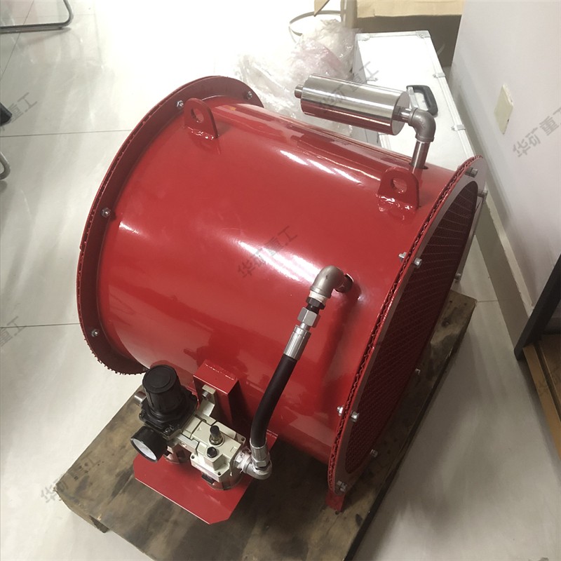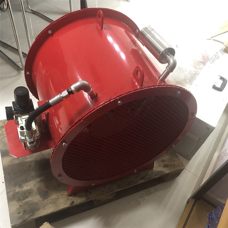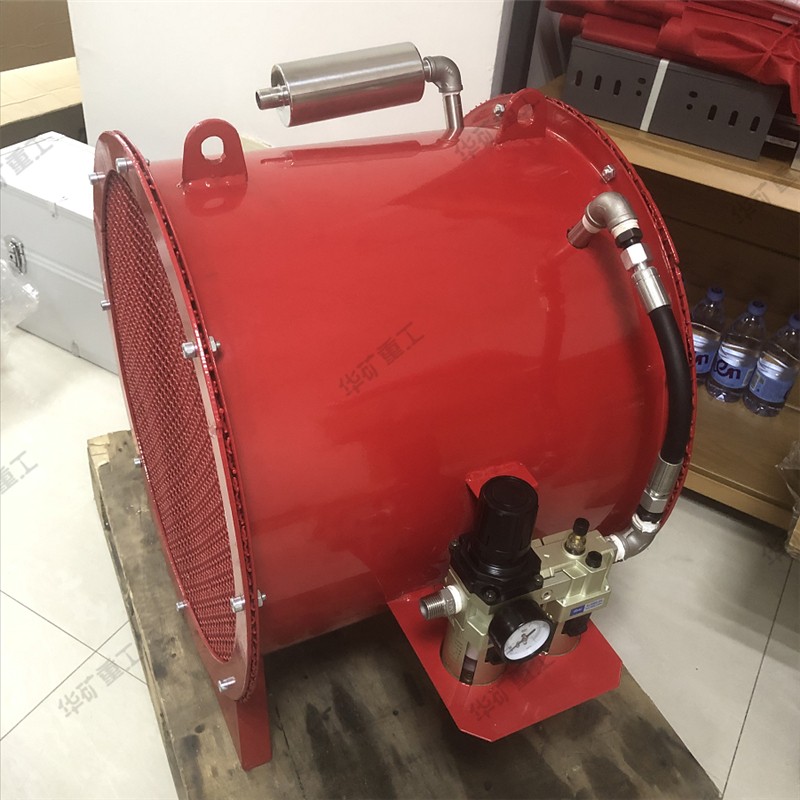 FQ系列矿用气动压入式轴流局部通风机(以下简称为通风机),是一种由气马达驱动的通风机,通风机结构紧凑,体积小,安装方便,使用安全,噪音小,适用于吹排煤矿井下通风死角,特别是隅角区域聚集的瓦斯和有害气体。通风机的结构特征为煤矿用、隔爆型、轴流式。