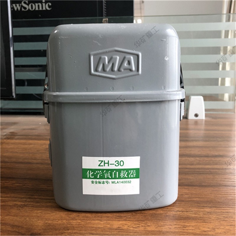 利用化学药品化学反应生氧原理制成的个人呼吸系统保护装置。适用于煤矿井下发生瓦斯、煤尘爆炸、火灾和瓦斯突出等灾害,造成环境中缺氧或出现有毒、有害气体时,可及时佩戴,迅速撤离灾区,实现个人逃生目的。