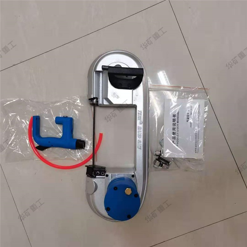 该锯适用于防爆要求较高的工作,可在较高温的操作使用,是一款功能多样、可靠的风动工具。广泛用于煤矿、化工厂、输油输气管道等型钢锯截、矿井下掘进支护、巷道修复、钢构架拆除、锚杆剪切等,工人劳动强度小。运用井下压风管道体系作为动力源。可快速对管道、电缆、角钢、布局钢、U型钢、链条、锚杆、锚索等进行切割。主要用于:刮板运输机链条切割,支护材料切割,金属锚杆切割,工作面抢险救援。通过采用不同锯条规格,可以切割从合金钢材到橡胶、原木、木制品、塑料等各种材料。气动线锯主要用于刮板运输机链条切割,支护材料切割,金属锚杆切割,工作面抢险救援。通过采用不同锯条规格,可以切割从合金钢材到橡胶、原木、木制品、塑料等各种材料矿用气动切割锯。