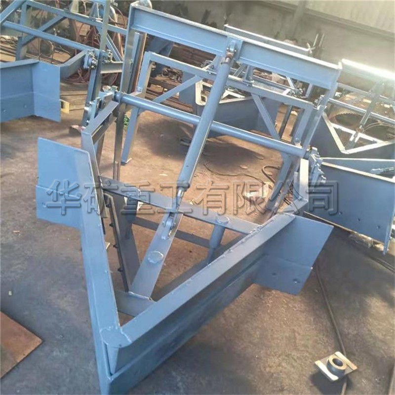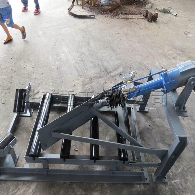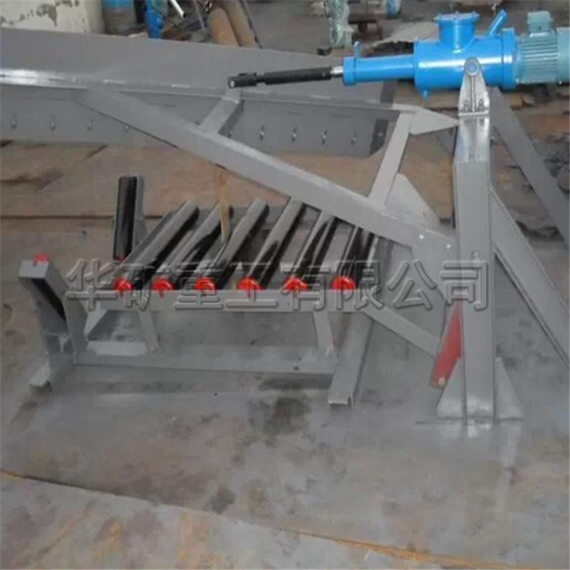 犁式卸料器是安装在胶带输送机的中间架上,能将胶带输送的物料均匀、连续卸入料斗或需要场所的皮带输料辅机。本卸料器比老式卸料器增加了可变槽角、副犁刀等,并改用电液推杆动力源。克服了老式卸料器犁料不尽、刮皮带以及电动推杆过载能力差,常烧毁电机,顶弯丝杠,机械易损坏等缺点。电液动犁式卸料器广泛用于矿山、冶金、电场、煤场、集运站、港口码头等输送机的分段卸料。