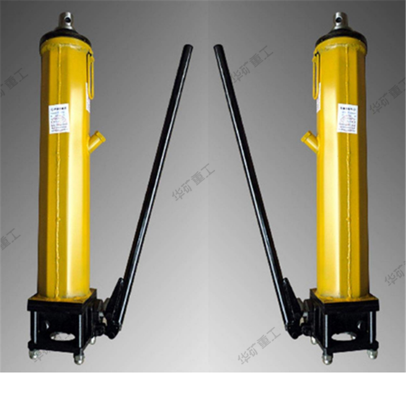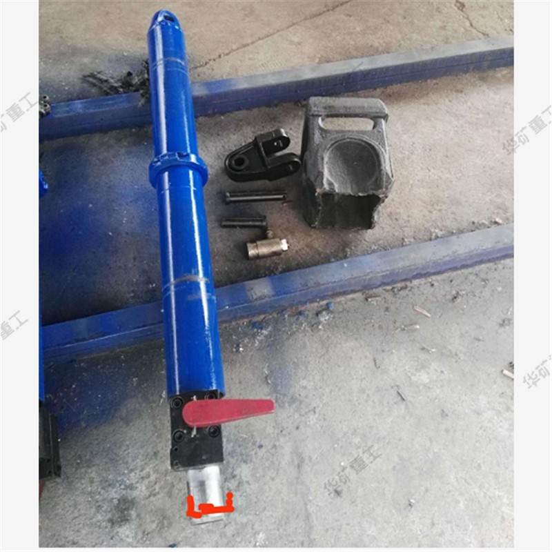 液压推溜器,是为满足煤矿炮采、普采工作面的需要而设计的手动移溜器具。与其它移溜器械相比,具有适应性强、机动性好、操作省力、工效高、易维修、安全可靠,比集中供油的液压千斤顶移溜可大量节省投资,经济上合算。 YT4-6A、YT4-8A液压移溜器结构为缸体外壁的前部和后部同向分别固定装有前液压阀和后液压阀,在两阀之间的缸体外壁相对的两侧固定装有定位轴;缸体通过定位轴座落在固定座上的纵向长孔内;固定座的底部固定装有底板,底板靠近活塞杆一端向上翘起;固定座的顶部固定装有呛顶座,呛顶座上部的槽形结构向后倾斜,并与水平面成20°-24°夹角。本实用新型设计合理,液压注液枪注液与缸体分离,推溜器移动方便,缸体两端可调;活塞杆可与挡煤板连接时正常接触,延长设备使用寿命。