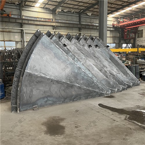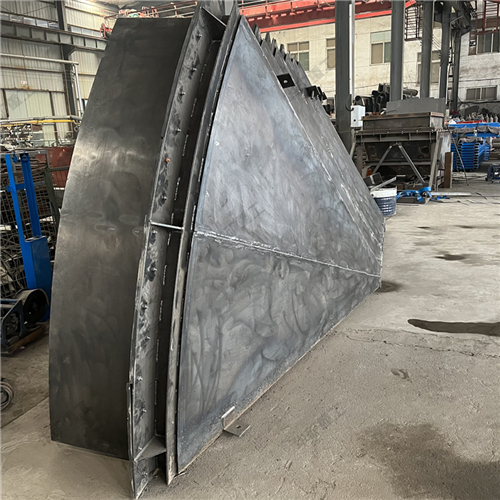 1、防爆盖采用锥形结构,分四个部分联接而成,每部分由钢板,角钢组焊成型。