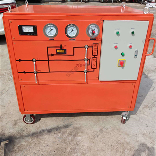 整个SF6气体充气和抽真空装置包括:真空泵、数显真空计、电磁真空装置、真空压力表、压力调节器、输气管以及维护SF6断路器所xu的阀门和仪表控制部件。