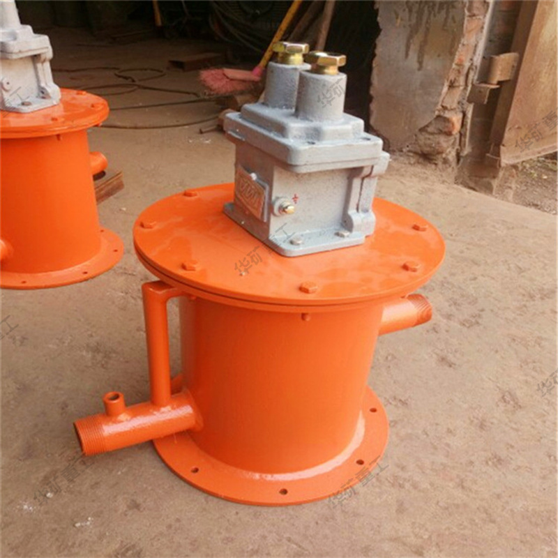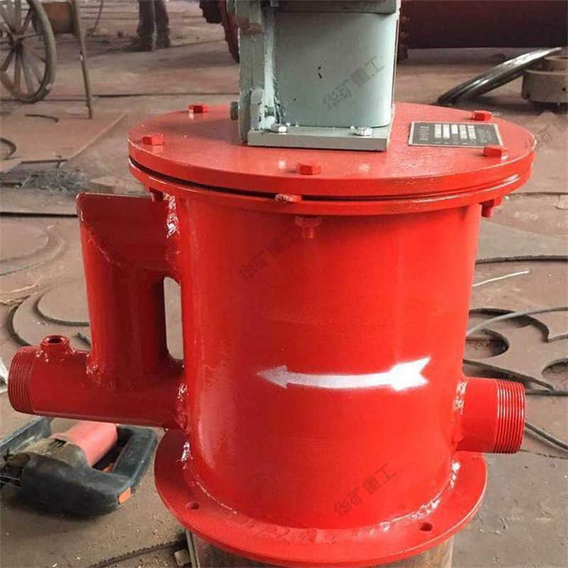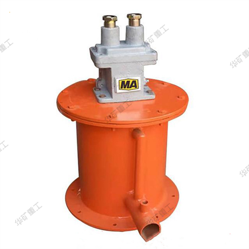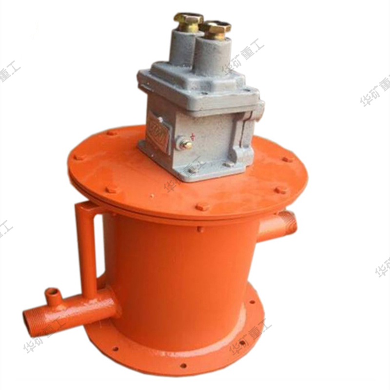断水保护装置由隔爆外壳和内部组装微动开关组成,外壳包括主腔和接线箱,运动部分为直动式。水箱内有不锈钢浮子,浮子室有进水口,浮子、密封垫及排气管出水口组成;利用水的浮力使浮子浮起打开微动开关,保证泵的控制回路接通;矿用微动隔爆开关管道无水时浮子落下,微动开关打开,泵的控制回路断开。还可根据需要在出水口安装水压表显示供水管的压力(安装磁化水室)。