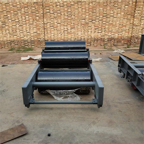 皮带输送机拉紧游动小车由车架、换向滚筒、滑轮组、车轮等组成,滑轮组装在车身后都与另一滑轮组相适应,其位置可受力时车身不被抬起,这样对保持车身稳定,防止换向滚筒上的胶带跑偏效果较好,车身下部还装着止爬钩,用以防止车轮脱轨掉道。游动小车向左侧移动时,胶带放出,机身伸长,游动小车向右侧移动时,胶带储存,机身缩短,通过钢丝绳拉紧游动小车可使胶带得到适当的张紧度。