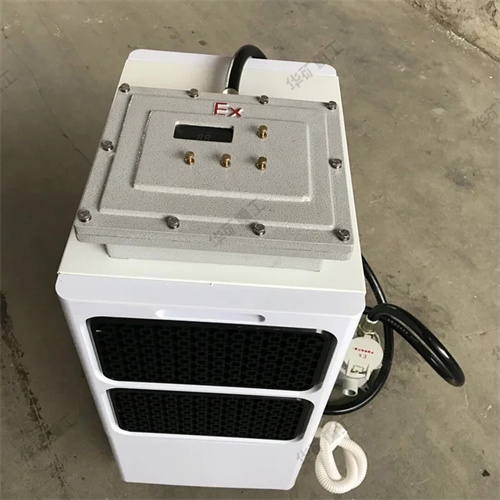 防爆除湿机通过风机将潮湿空气抽入机器内部,通过压缩机制冷将蒸发器降温至露点以下,潮湿空气经过蒸发器在表面凝结成水,汇集至接水盘后,流入水箱中,干爽空气经冷凝器重新加热由出风口排出,这样不断循环将室内湿度降低。