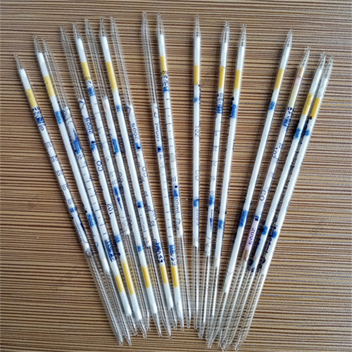 气体检测管外壳材质玻璃管,内装一定载体和吸附剂,气体通过时发生变色反应,由白色变成黄绿色,变色长度与二氧化氮气体的浓度成正比,比长定量,而浓度标尺一般都直接印在检测管上,因此可以直接从检测管上的标尺读取被测气样中气体的浓度。检测管以其快速、直观、经济适用、安全可靠、操作简单,随时随地都可检测等优点,广泛用于环保、化工、煤炭、石油等多领域。