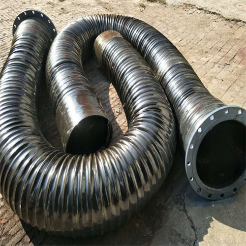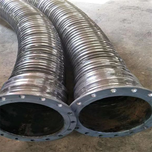 橡胶伸缩软管由耐老化内胶层,织物增强层,中间螺旋钢丝骨架层及耐老化外胶层组成