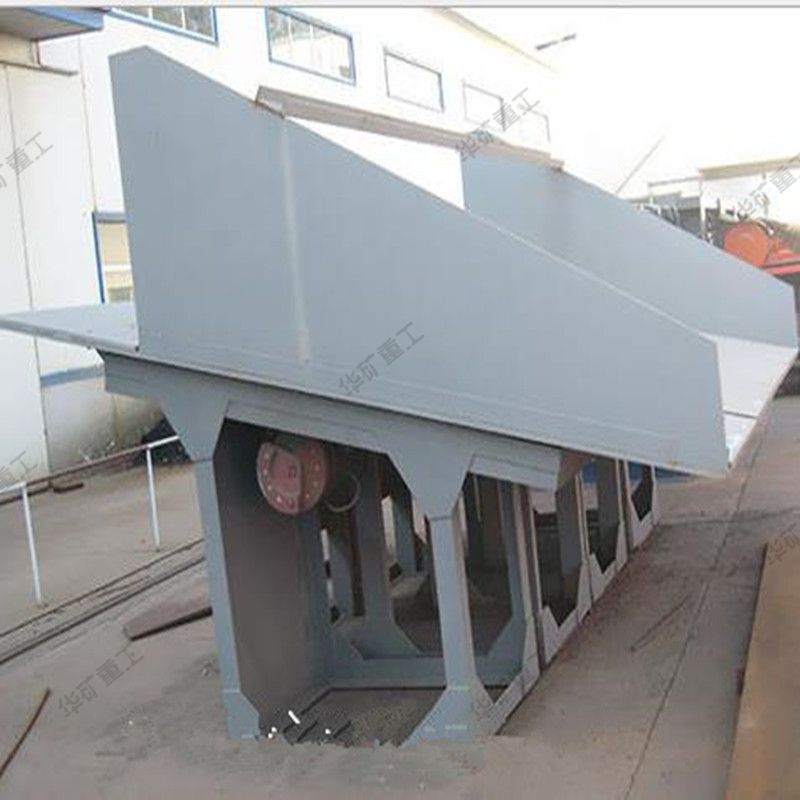 双质体振动给矿机:采用双质体近共振惯性振动原理。上下布置单排或双排剪切橡胶弹簧,由下压板通过螺栓连接在平衡体上,再由左右侧板与槽体连接。结构紧凑、衡压平稳启动、不受槽体物料载重和卡死的影响给矿粒度(0-850mm),给料量大(8-1800t/h),可以配置无级变频器,实现变频给料、配料,远距离微机操作控制。