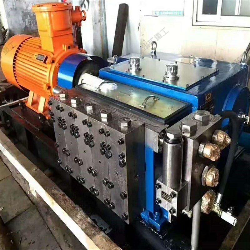 乳化液泵产品系列以用四极防爆电机驱动,经一级齿轮减速,带动五曲拐曲轴旋转,再经连杆、滑块带动柱塞作往复运动,使工作液在泵头中经吸排液阀吸入和排出,从而使电能转换成液压能,输出高压液体为中、厚煤层综合机械化采煤液压支架提供动力源,也可以用于地面工作液相同的其它液压设备。