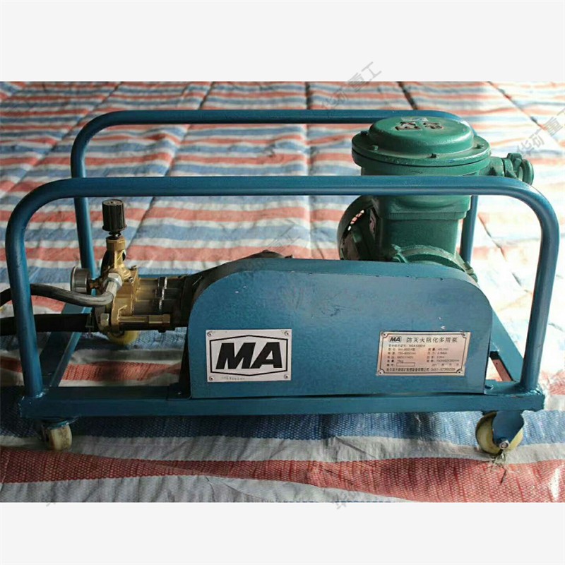 阻化泵主要用于煤矿井下喷洒阻化剂溶液防止自燃发火。适于采煤工作面采空区浮煤喷洒阻化剂防火或高冒顶插管压注阻化液防火。