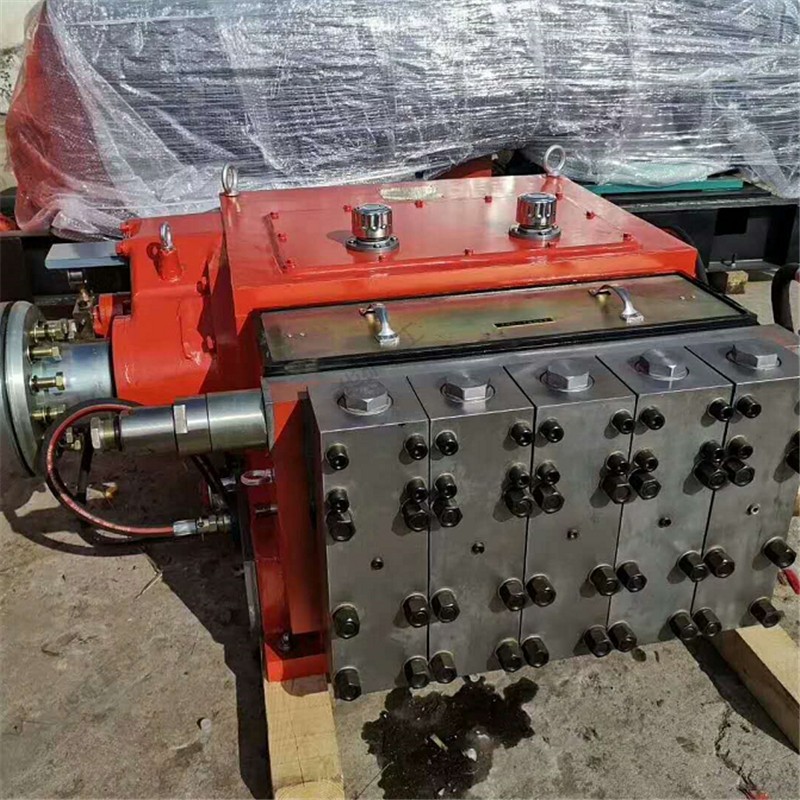 乳化液泵产品系列以用四极防爆电机驱动,经一级齿轮减速,带动五曲拐曲轴旋转,再经连杆、滑块带动柱塞作往复运动,使工作液在泵头中经吸排液阀吸入和排出,从而使电能转换成液压能,输出高压液体为中、厚煤层综合机械化采煤液压支架提供动力源,也可以用于地面工作液相同的其它液压设备。其主要配件有: