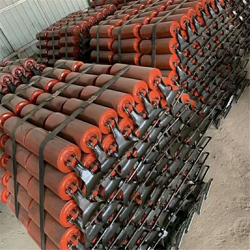 调心托辊有通用型、摩擦可逆型、强力型、锥型、螺旋型、组合型等。本公司生产的托辊组种类全,品质可靠。各类辊子的结构先进,性能可靠,辊皮用材经严格挑选,采用优质专用焊管,有严格公差要求。轴材料采用冷拔圆钢,轴承座采用优质钢板冲压,密封结构采用PDC型,三道密封装置,防尘、防水性能均优于相关标准。装配后辊子强度好,经向跳动量小,旋转阻力小,重量轻,能耗低,使用寿命长,一般均超过30000小时。