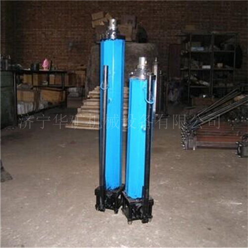 液压推溜器,是为满足煤矿炮采、普采工作面的需要而设计的手动移溜器具。与其它移溜器械相比,具有适应性强、机动性好、操作省力、工效高、易维修、安全可靠,比集中供油的液压千斤顶移溜可大量节省投资,经济上合算。 YT4-6A、YT4-8A液压移溜器结构为缸体外壁的前部和后部同向分别固定装有前液压阀和后液压阀,在两阀之间的缸体外壁相对的两侧固定装有定位轴;缸体通过定位轴座落在固定座上的纵向长孔内;固定座的底部固定装有底板,底板靠近活塞杆一端向上翘起;固定座的顶部固定装有呛顶座,呛顶座上部的槽形结构向后倾斜,并与水平面成20°-24°夹角。本实用新型设计合理,液压注液枪注液与缸体分离,推溜器移动方便,缸体两端可调;活塞杆可与挡煤板连接时正常接触,延长设备使用寿命。