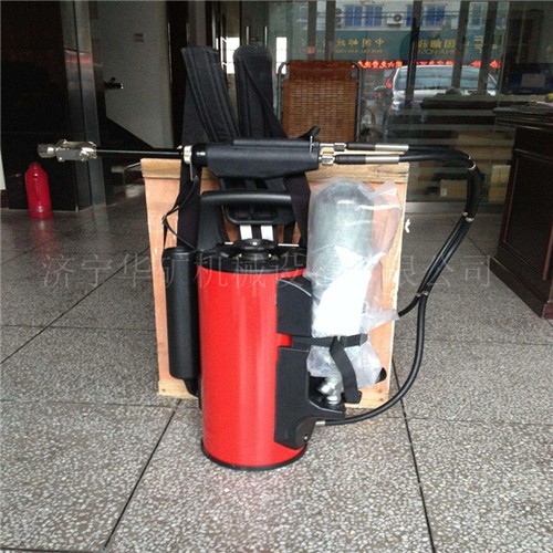 背负式脉冲气压喷雾水枪是将空气呼吸器和细水雾灭火装置进行有机组合,既能满足灭火操作人员方便携带进入火灾现场进行灭火,又能满足呼吸需要,且重量配置合理具有背负舒适,操作简单,维护方便等特点。
