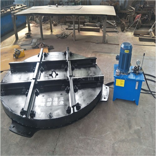 电动液压重型转盘是改变轨道车辆方向的设备,与其他设备配套使用,可实现在0~180°范围内按需要设置固定的进出线路。电动液压重型转盘分为手推式和电动遥控式。