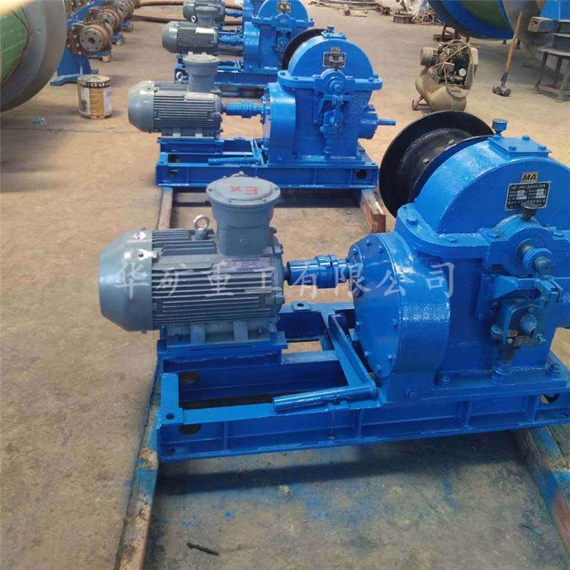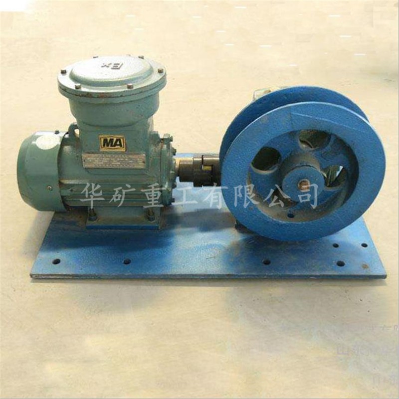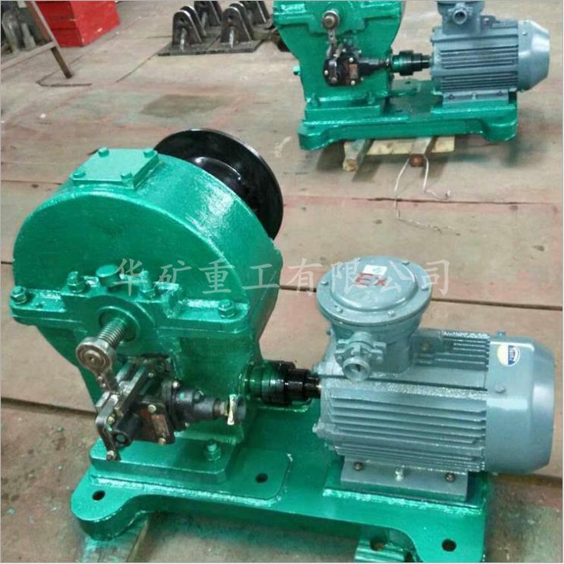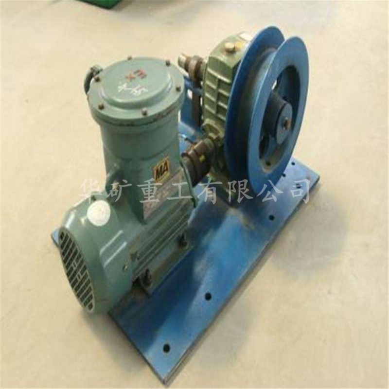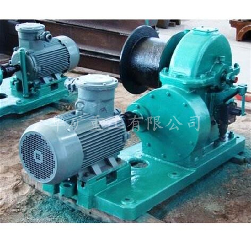 启闭风门绞车由防爆电机、联轴节、传动齿轮、蜗轮减速机、卷筒、底座六大部分组成。由电动机通过一对传动锥齿轮,传动蜗轮减速机带动卷筒进行工作,传动零件的支承、蜗轮采用滑动轴承,蜗杆采用滚动轴承,蜗杆有自锁作用,以防止钢丝绳下滑。本机以电动机驱动,但是在暂时切断电源或不具备电源时亦可手动驱动。启闭风门绞车适用于矿井中大型轴流式通风机启闭风门以转换风流方向,并配有隔爆电气设备,可用于有瓦斯、煤尘的井下作业。