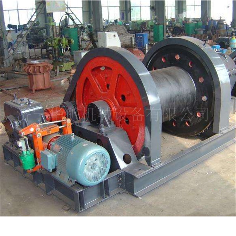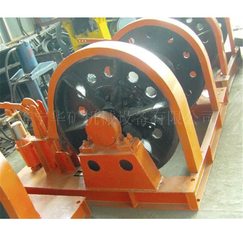 凿井绞车结构为缠绕式,主要由主轴装置、减速器、带制动轮的弹性联轴器、工作制动器、安全制动器、机座、电动机等部件组成。