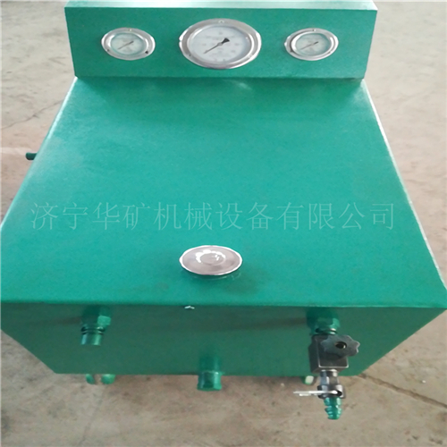 以静压水的水压为动力,通过增压缸增压,达到在有水源的地方,不需电力就可以拥有一个小型乳化液泵站的目的。为巷道维修、掘进、边角煤开采、抢险救灾等无泵站有水源的地方提供便利。工作时分两个阶段: