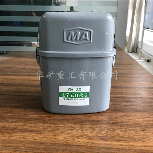 ZH30型隔绝式化学氧自救器是利用化学药品反应产生氧气的隔绝闭路循环式个人呼吸系统保护装置,主要用于煤矿或环境空气中发生有毒有害气体污染及缺氧时,为佩戴者提供氧气。