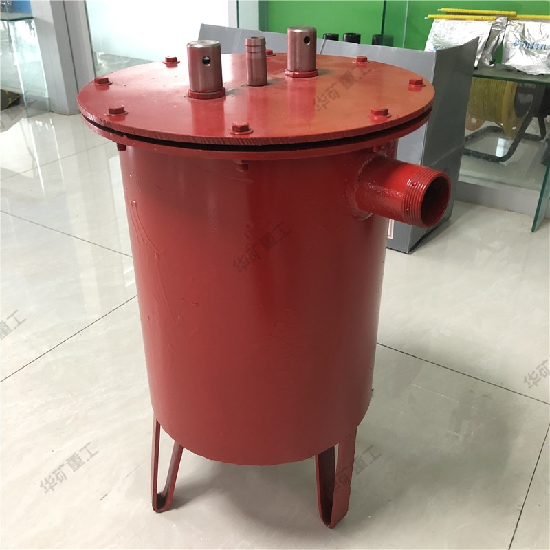6.如果抽放管路内脏污较多,在管路与放水器之间要安装一个沉淀器,沉淀器由用户自备。沉淀器一个进水口(1.5'),一个出水口(3/4'),只要能将管路中的赃物沉淀下来以便放水器正常工作就行。管路中赃物较少的地方可以不安装沉淀器。