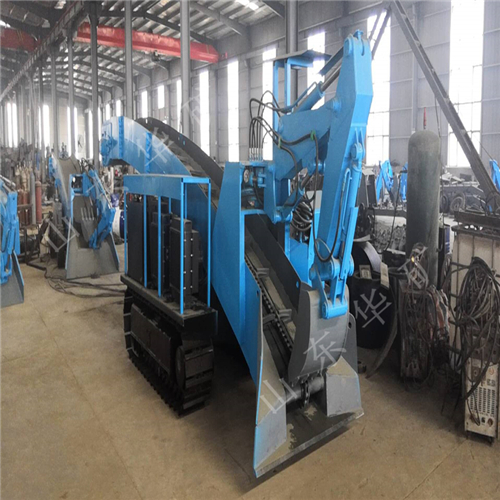 采用底盘分体设计,通过力强,可以灵活的通过巷道“小支脉”。输送大架采用分体设计,对于竖井矿山下井安装极为方便。皮带采用pvg高拉力阻燃带使用寿命长,可保证掘进巷道距离为360m以上。 挖掘式装载机扒渣机具由转弯灵活,操作简单,掘进巷道不用调头,效率高